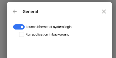 - If you prefer Khernet to run in the background (without showing the main window), enable Run application in background.