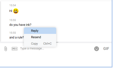 - Right-click a message to Reply, Copy, or Resend.